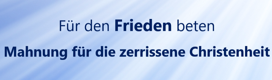 Und nun (AS: in der damals aktuellen Situation) bangt die Menschheit wieder um den Frieden. Sie bittet darum. Die Christenheit aber ist aufgesplittert in so viele Kirchen und Sekten. Und jede behauptet von sich, die wahre Lehre zu verbreiten, und wer ihren Weg beschreite, gehe mit Bestimmtheit in die Glückseligkeit ein. Ja, es wird Unmögliches behauptet und man maßt sich das Recht an zu sagen, dass man an erster Stelle stehe, um das Himmelreich zu gewinnen.