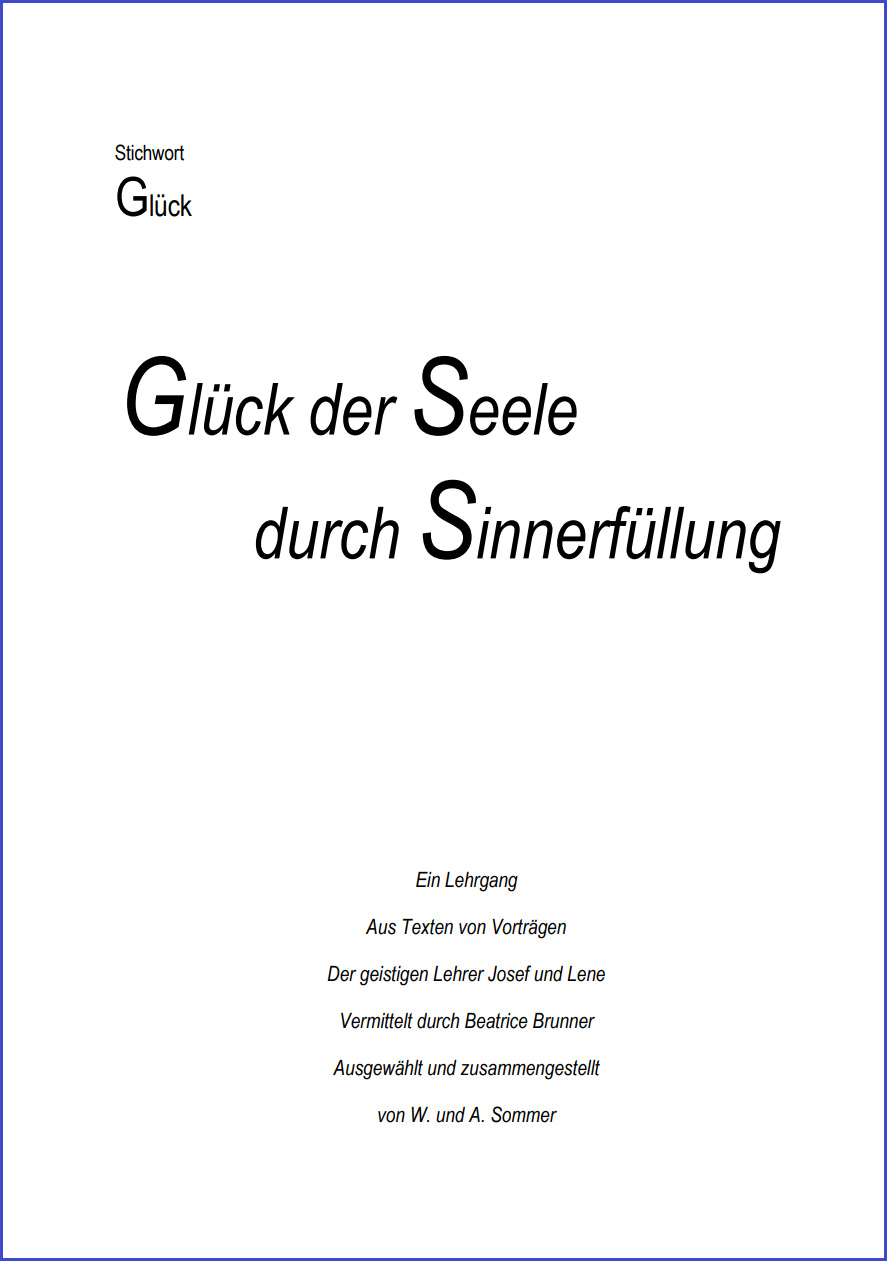 Wenn wir in das menschliche Leben eintreten, werden uns von der Gotteswelt, die uns die Wege dazu bahnt und begleitet, bestimmte Aufträge und Erwartungen mitgegeben. Diese Aufträge und Erwartungen dringen nicht in unser irdisch-menschliches Bewusstsein ein. Das geistige Bewusstsein im Innersten unserer Seele weiß aber darum. Wenn unser Denken und Handeln diesem inneren Auftrag entsprechen, dann reagiert unsere Seele von innen heraus mit Glücksempfinden – wir empfinden das als Sinnerfüllung; entspricht das Handeln nicht dem inneren Auftrag, dann geht die Reaktion der Seele in Richtung Traurigkeit und Niedergeschlagenheit.
